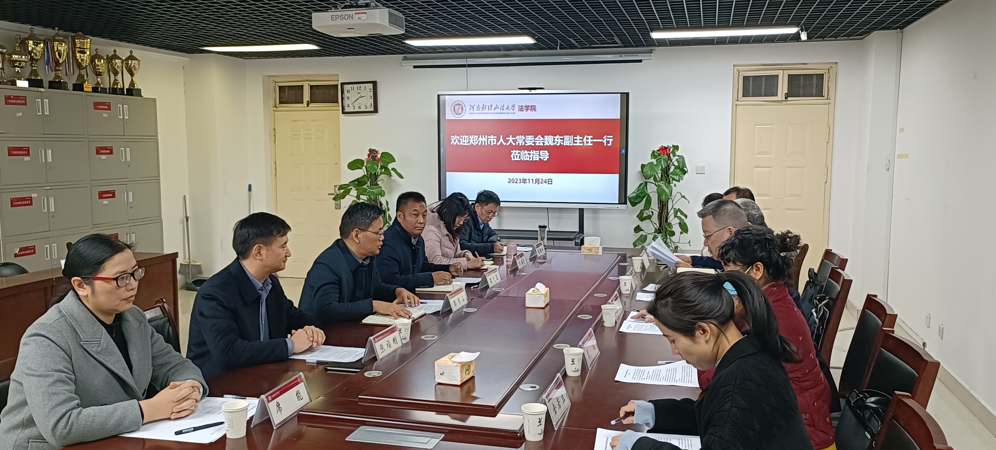 2023年11月24日,郑州市人大常委会魏东副主任一行就基层立法联系点的建设情况来冰球官网调研交流。冰球突破豪华版官方网站党委书记郭书山、副院长樊晓磊以及张福刚、杨金华等部分教师参加了调研座谈。